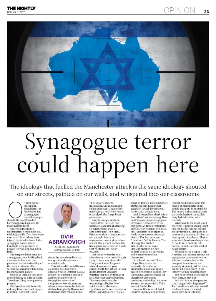 Dvir warns that the Manchester Synagogue attack could happen here